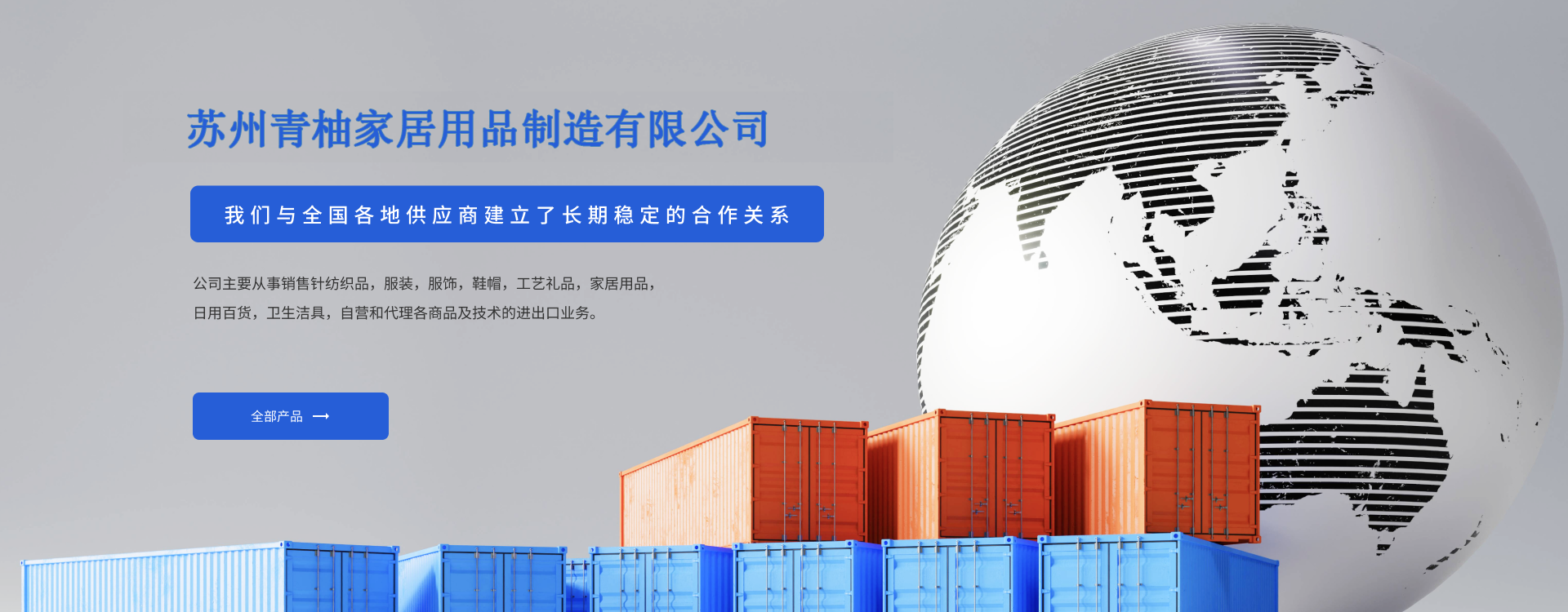 蘇州青柚家居用品制造有限公司,主要從事銷售針紡織品,服裝,服飾,鞋帽,工藝禮品,家居用品,日用百貨,衛(wèi)生潔具,自營和代理各商品及技術(shù)的進(jìn)出口業(yè)務(wù)。公司與全國各地供應(yīng)商建立了長期穩(wěn)定的合作關(guān)系。為了提供更好的品質(zhì)與服務(wù),旗下設(shè)立了倉儲,檢品,檢驗(yàn),包裝為一體的公司,確保質(zhì)量的同時(shí)能夠按時(shí)交貨。